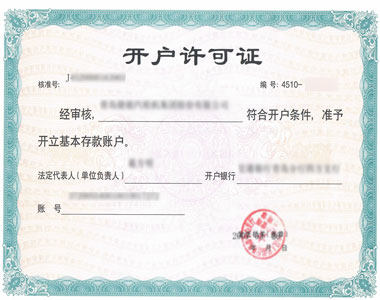 開設(shè)銀行基本戶 【開戶許可證】